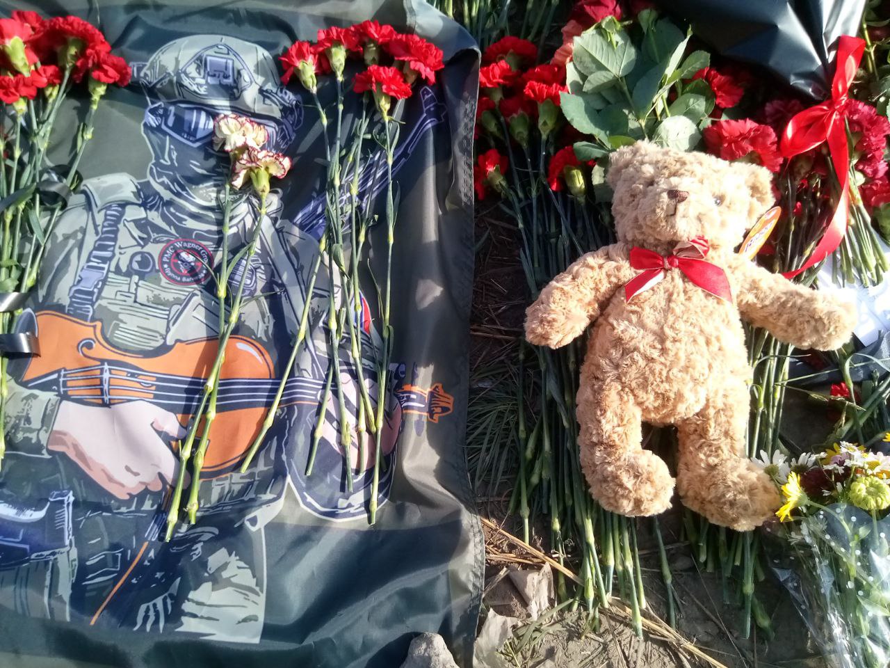 16:55 Стихийный мемориал у Вагнер-центра в Петербурге теперь охраняет медвежонок. Его привёз мужчина в камуфляже. Он, не стесняясь слёз, сложил руки крест-накрест, простоял так с минуту, схватился за голову, а затем ушёл.
