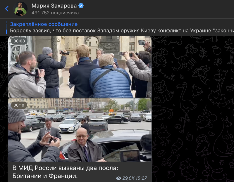 Для чего в МИД России вызваны послы Британии и Франции. Под постом Захаровой гадают: "Да, сказать им, что "Сарматы" не промахиваются"