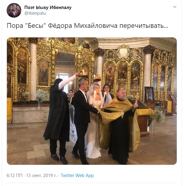 "Пора "Бесы" Фёдора Михайловича перечитывать", - прокомментировал свадебную фотографию Собчак и её мужа эстонский поэт Ыыху Ибенпалу.