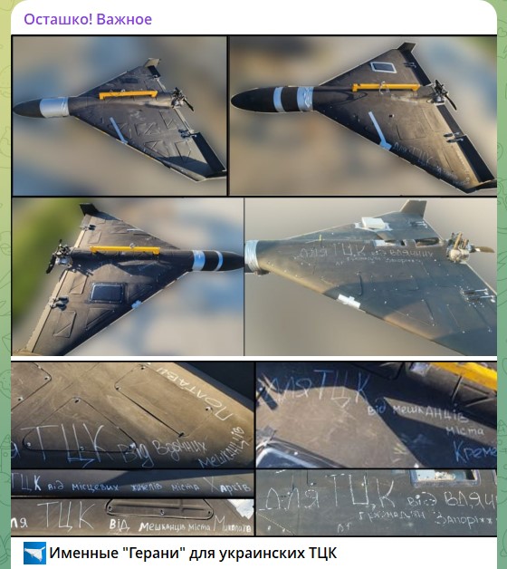 В Сети появились изображения русский "Гераней" с весьма интересными подписями. На них значится: "для ТЦК - от жителей Запорожья и Полтавы".