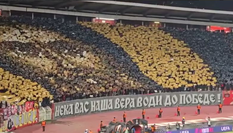 Этот, по мнению европейских спортивных чиновников, инцидент произошёл 26 февраля в Белграде во время матча 1/16 финала Лиги Европы, в котором сербская команда встречалась с французским "Лиллем". Болельщики при помощи цветных лоскутов выложили на трибуне огромный баннер с изображением святого Симеона Мироточивого, память которого совершала православная Церковь в тот день. Импровизированная икона сопровождалась надписью: "Пусть наша вера приведёт нас к победе".