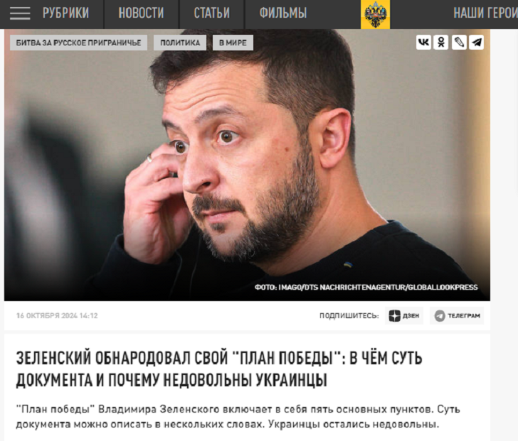 Мы к этим пунктам ещё своих двадцать, наверное, прибавить можем. Но что касается "плана победы" Зеленского, просроченного, то он ничего толком не презентовал. А то, что презентовал - это вещи неочевидные. Мы видим, что ничего нового не происходит. Все заявления, которые делают англичане или немцы, или [Джо] Байден и его компания, они новизной не отличаются. Они постоянно повторяют одно и то же,