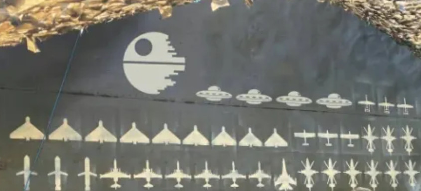 За этот год ему нарисовали в трофеях и "Кинжалы", и "Цирконы", и какое-то невероятное количество всех видов авиации. Не хватало в этой коллекции только фантастической "звезды смерти",