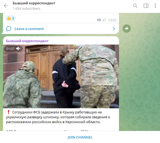 Сообщается, что задержанная жительница Херсонской области сама установила контакт с представителями СБУ. На допросе она заявила, что вступила в некий телеграм-канал, добавив, что "друзья посоветовали".