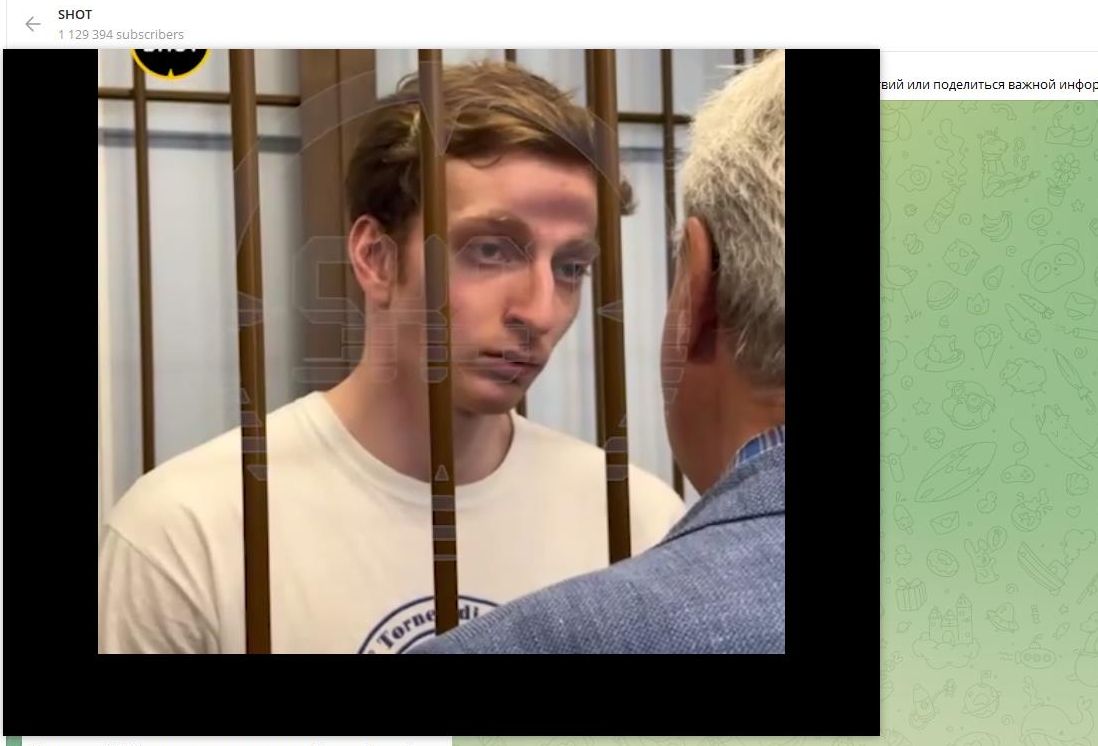 Тимур Бажаев за решёткой. Скриншот: телеграм-канал SHOT