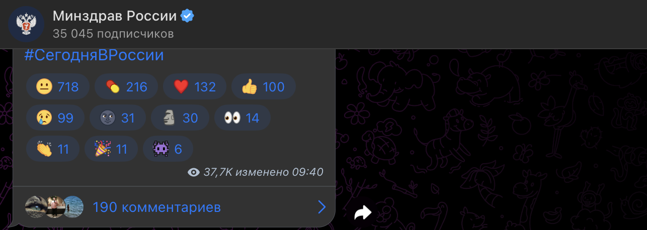 Под постом появилась говорящая правка "изменено". Фото: "Минздрав России"