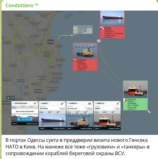 С чем связана сегодняшняя активность натовских самолётов? Не исключено, что с визитом на Украину нового генсека Альянса Марка Рютте. Как пишет Condottiero ™, прямо сейчас в портах Одессы суета в преддверии визита нового генсека НАТО в Киев: