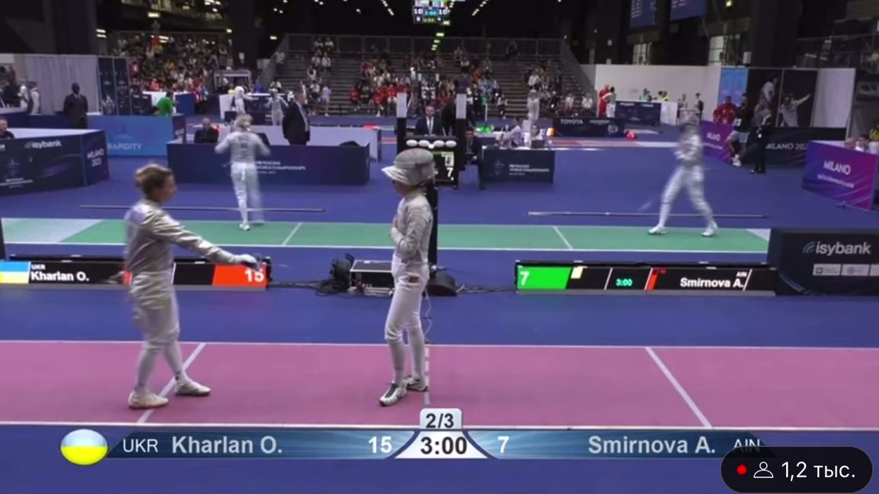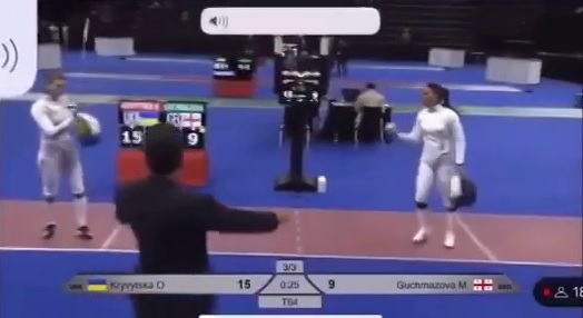 Речь идёт про инцидент, который произошёл на чемпионате Европы по фехтованию в Базеле. В поединке сошлись фехтовальщица Майя Гучмазова, выступающая на соревнованиях за Грузию, и украинская спортсменка Елена Кривицкая, представляющая на соревнованиях Украину.