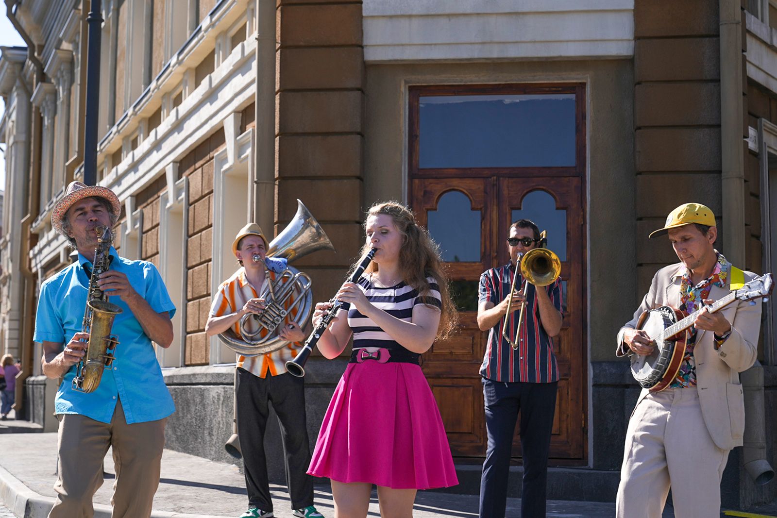 Увидеть выступления уличных джазовых музыкантов можно будет в "Городском дворике". Будет также организована постановочная съёмка эпизода кинофильма "Д’Артаньян и три мушкётера". Гости кинопарка смогут прочувствовать атмосферу легендарного фильма и провести тематическую фотосессию.