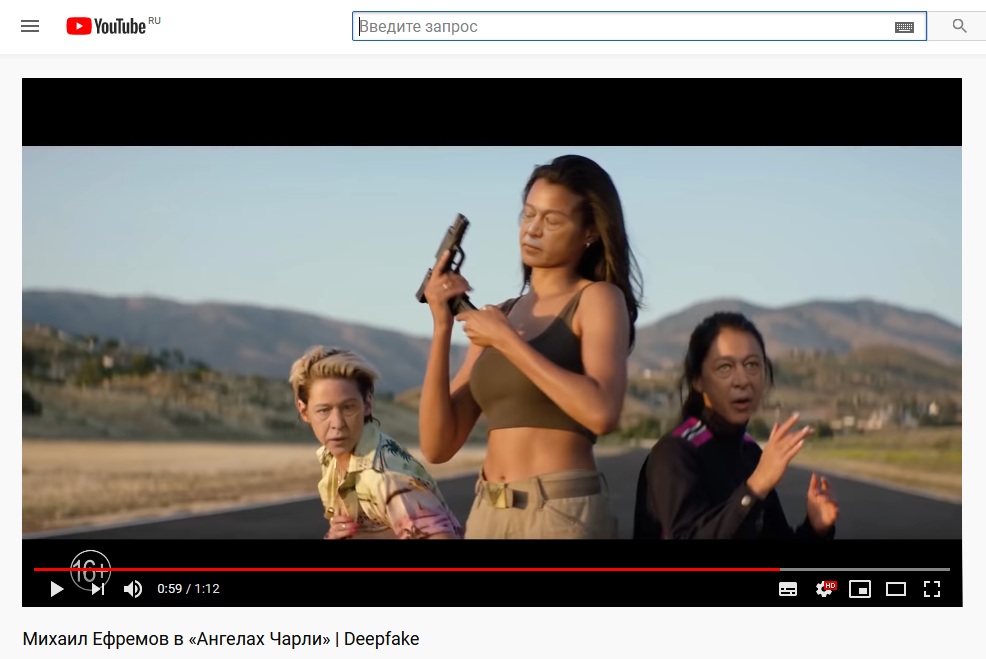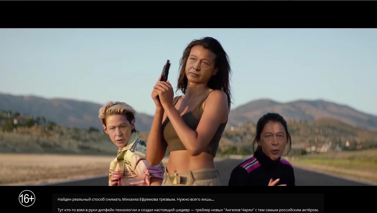 С помощью программы DeepFake в трейлере голливудского блокбастера "Ангелы Чарли" лица главных героинь заменили на лицо российского актёра Михаила Ефремова. "Единственный способ снять его трезвым", - шутят в Cети.