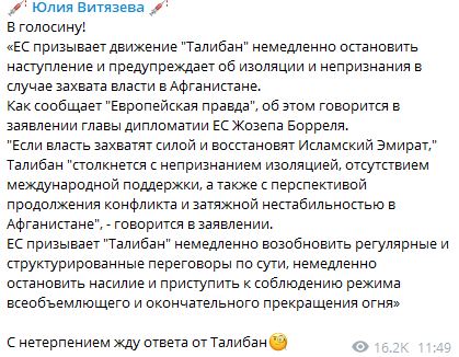 Боррель призвал боевиков возобновить переговоры и остановить насилие. Журналистка Юлия Витязева с иронией восприняла призыв Евросоюза.