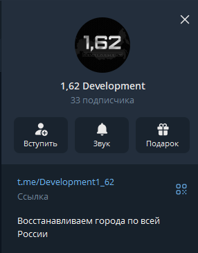 Скриншот телеграм-канала 1,62 Development