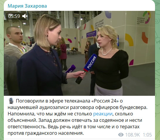 ФОТО: СКРИНШОТ T.ME/MARIAVLADIMIROVNAZAKHAROVA