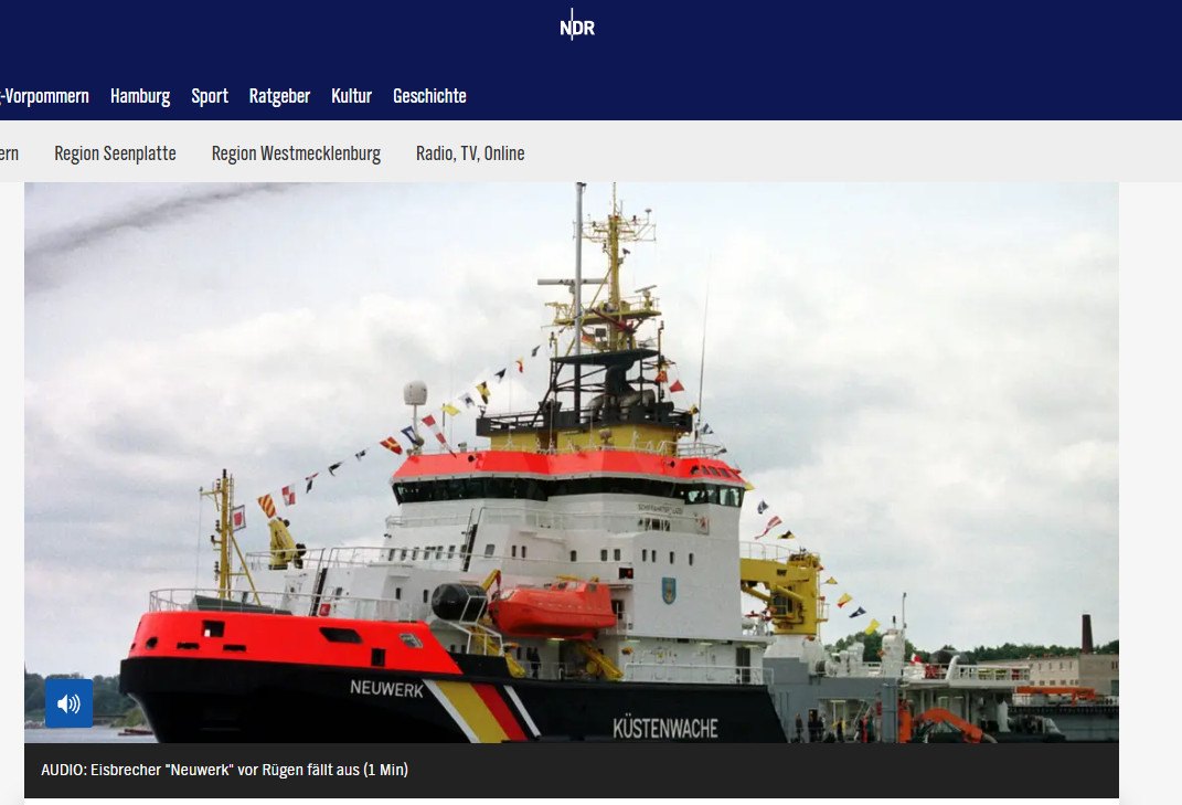 Это многоцелевое судно под названием Neuwerk. Его задачей было очистить от льда фарватер к терминалу сжиженного природного газа в порту Mukran перед островом Рюген, сообщает NDR.