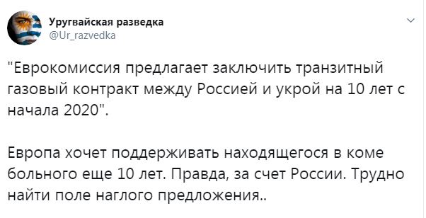 "Европа хочет поддерживать находящегося в коме больного еще 10 лет. Правда, за счет России", - констатируют пользователи Twitter.