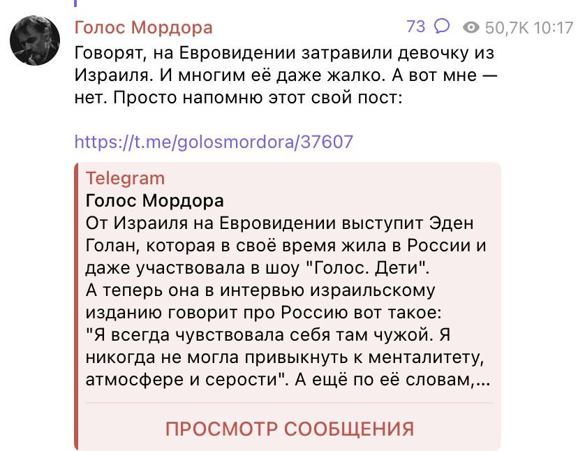 Говорят, на Евровидении затравили девочку из Израиля. И многим её даже жалко. А вот мне - нет,