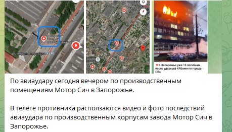 Согласно информации, полученной из нескольких телеграм-каналов и источников противника, в Запорожье ВКС России нанесли весьма интересный удар по заводу "Мотор Сич" с использованием корректируемых авиабомб (КАБ). Сами украинцы не раз заявляли, что завод играет одну из ключевых ролей в обеспечении нужд ВСУ, ведь там делали двигатели для реактивных дронов "Паляница" - это то самое супероружие Киева, которое, как кажется, сейчас зависло в производстве.