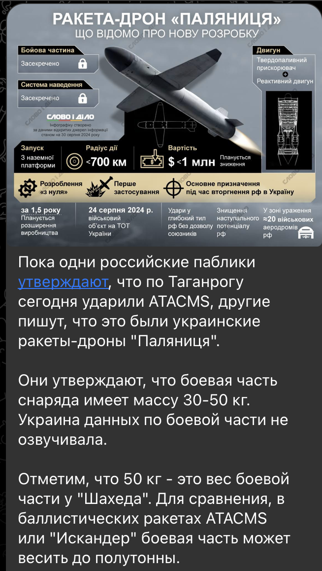 Эксперты начали обсуждать, как Украине удалось создать новую баллистическую ракету в условиях значительной деградации научного и военного комплексов всего за 18 месяцев. Некоторые военные обозреватели предполагают, что "Паляница" может быть переименованным вариантом американской ракеты ATACMS.