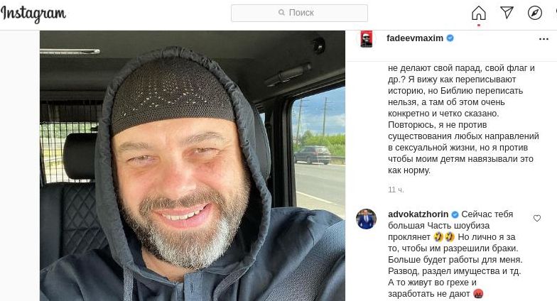 Под постом Фадеева не удержался от иронии и оставил короткий комментарий адвокат Сергей Жорин, известный своими громкими делами, часто представляющий интересы "звёзд" шоу-бизнеса. К слову, одним из его недавних клиентов стал Моргенштерн, в песнях которого заподозрили пропаганду наркотиков.
