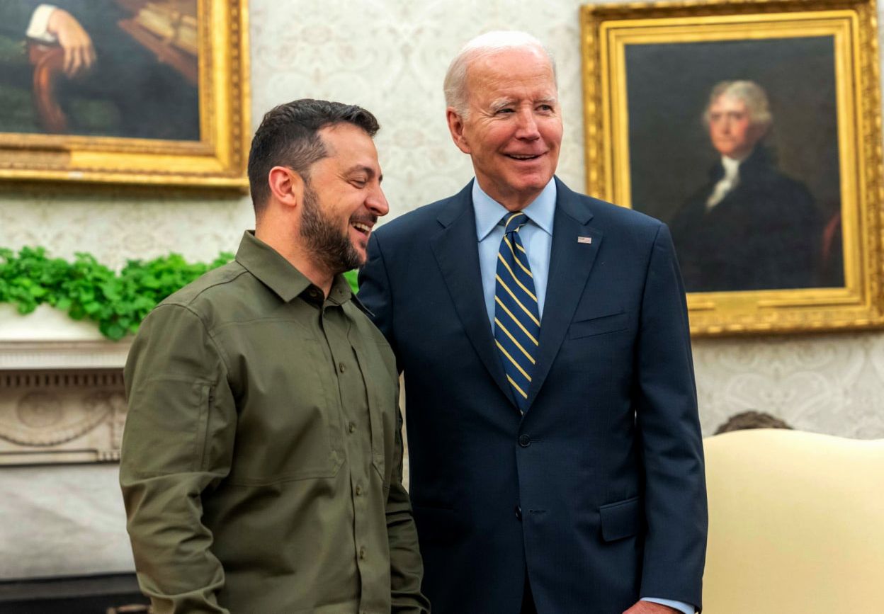 Всего несколько месяцев назад атмосфера встречи Зеленского и Байдена была вполне позитивной. Сейчас уже не до веселья. ФОТО: White House Office/Globallookpress