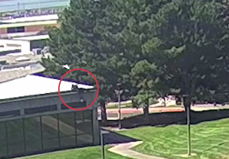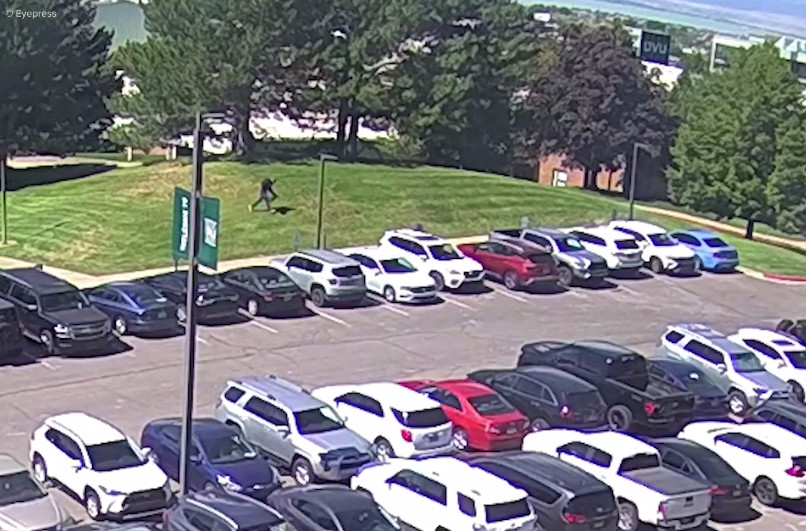 ФБР опубликовало кадры с места убийства Чарли Кирка: мужчина находится на крыше здания, затем спускается, идёт по газону мимо парковки в сторону проезжей части, на ходу снимая куртку.