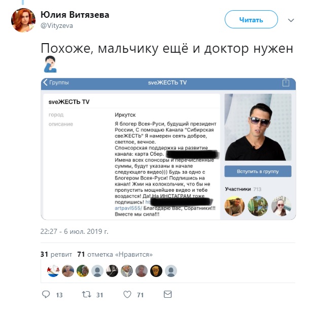 Кроме того, Витязева добавила кое-что о личности парня, распространявшего фейк.