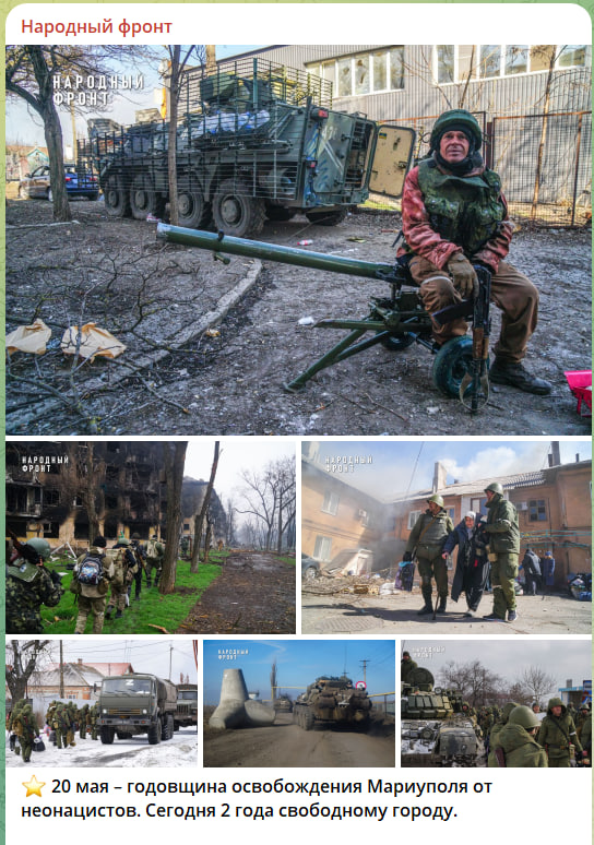 20 мая, как выразился военкор Александр Коц, дважды памятная дата для России. Это и полное освобождение Мариуполя после длительных боёв с террористической группировкой "Азов"*, и освобождение Бахмута (Артёмовска) от наводнивших его сил противника.
