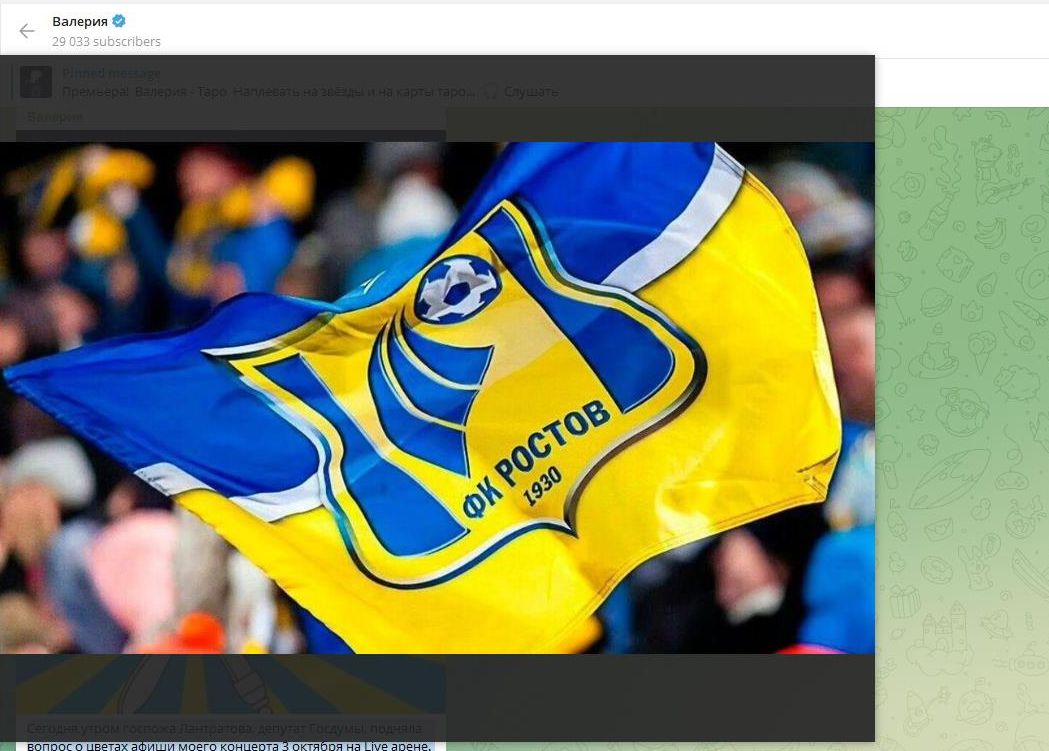 Жёлто-синие цвета действительно распространены в нашей стране. Например, на эмблеме ФК "Ростов". Скриншот: телеграм-канал "Валерия"
