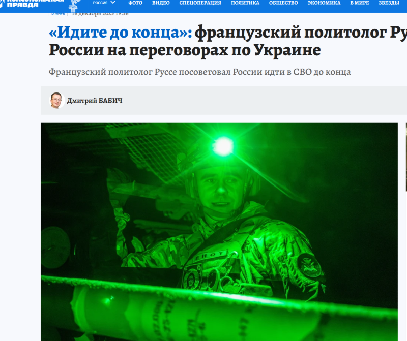 "Мы, французы, совершили большую ошибку в 1918 году, когда германская армия лежала на боку, а мы пошли на прекращение огня с ней вместо того, чтобы пойти до Берлина, – сказал Руссе в интервью "КП". - Франция потом дорого за это заплатила, потому что у немцев осталось впечатление, что Германия ту войну толком не проиграла. В итоге уже в 1933 году мы получили реваншиста Гитлера у власти, а в 1939 году - ещё более страшную войну. Советую вам: идите до конца!"