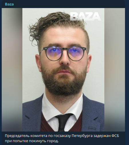 ФСБ задержала председателя Комитета по госзаказу Санкт-Петербурга Дениса Толстых при попытке покинуть город. Чиновника остановили в аэропорту Пулково.