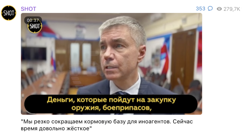 Депутат Дмитрий Ревенко считает необходимым сократить "кормовую базу" иноагентов. Скриншот t.me/shot_shot