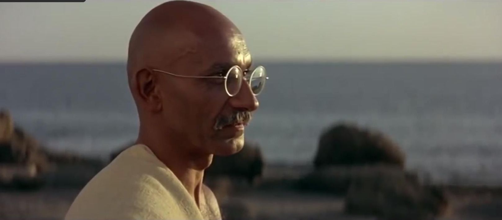 Бенг Кингсли в роли Махатмы Ганди. Кадр из фильма "Ганди" (1982, режиссёр Ричард Аттенборо).