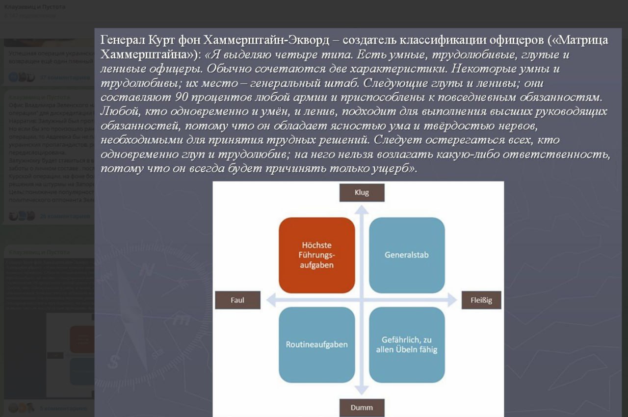 Андрей Пинчук, первый министр государственной безопасности ДНР и командир отряда "БАРС-13", вспомнил о классификации офицеров, которую когда-то разработал человек, имевший шанс уничтожить Гитлера.