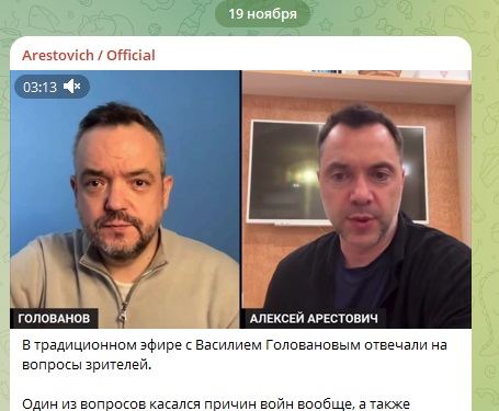 Скриншот/t.me/O_Arestovich_official/4698.