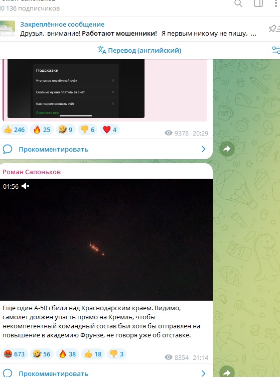 Ещё один А-50 сбили над Краснодарским краем. Видимо, самолёт должен упасть прямо на Кремль, чтобы некомпетентный командный состав был хотя бы отправлен на повышение в академию Фрунзе, не говоря уже об отставке.
