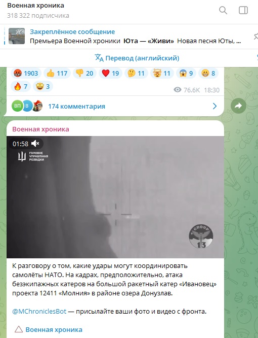 Морские дроны подразделения Group 13 Главного управления разведки Минобороны Украины 1 февраля атаковали российский ракетный катер проекта 12411 "Молния" в Чёрном море вблизи военно-морской базы на озере Донузлав. К сожалению, атака была успешной – корабль затонул. Но есть целый ряд нюансов, о которых отказываются говорить все стороны.