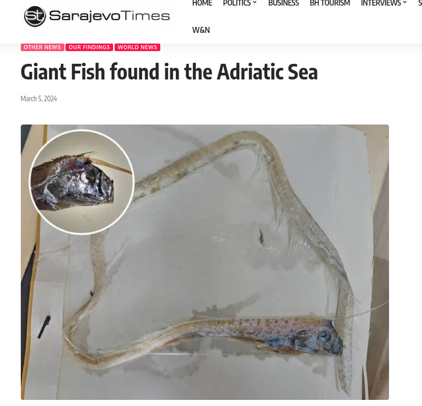 И тут Sarajevo Times сообщает, что Хорватский институт океанографии и рыболовства зафиксировал редчайший случай - в Адриатическом море зимой были обнаружены аж сразу четыре "рыбы Апокалипсиса".