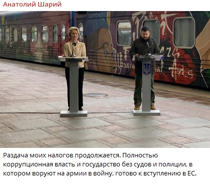 "Раздача моих налогов продолжается. Полностью коррупционная власть и государство без судов и полиции, в котором воруют на армии в войну, готово к вступлению в ЕС", - отметил он.