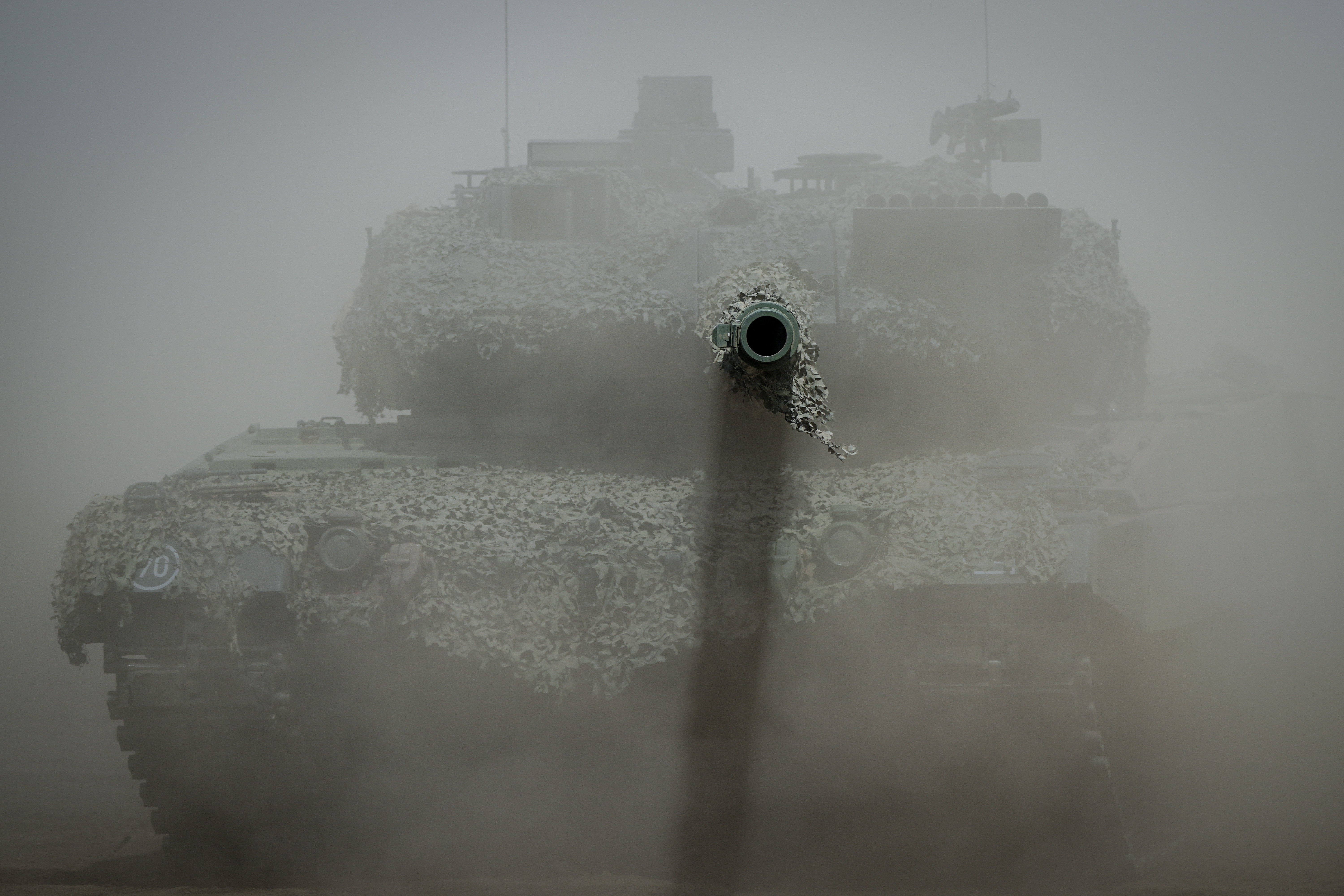 Глава Минобороны Литвы проехался на башне отремонтированного танка по территории военного учебного центра в Рукле. Именно там с октября этого года проводят ремонты подбитых немецких танков Leopard 2.