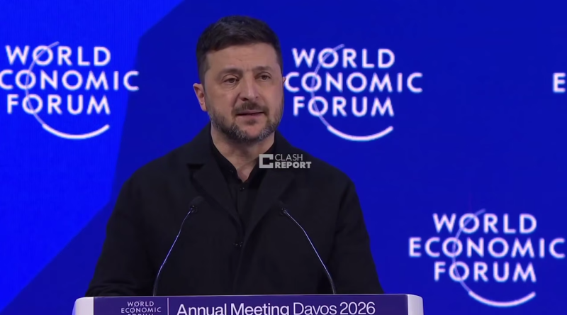 Зеленский выступает в Давосе. Фото: скриншот Clash Report