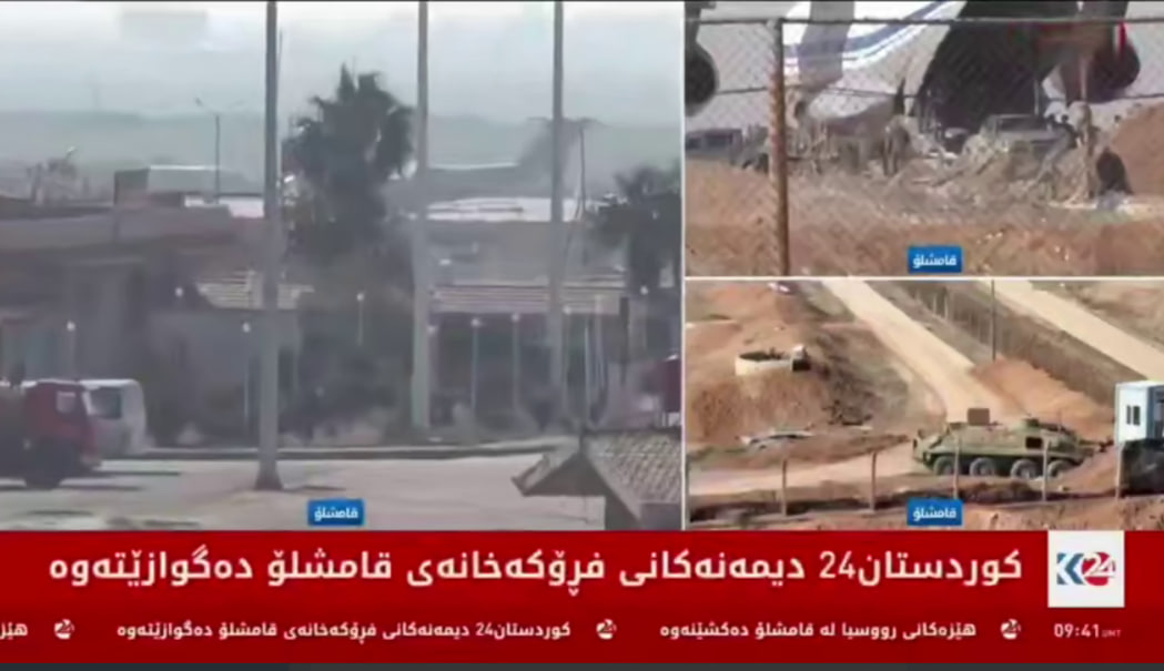 Вещающий из Ирака телеканал Kurdistan24 также сообщает об активных передвижениях в районе Камышлы. Были показаны кадры, на которых запечатлена погрузка оборудования и техники в военно-транспортный самолёт Ил-76 ВКС.