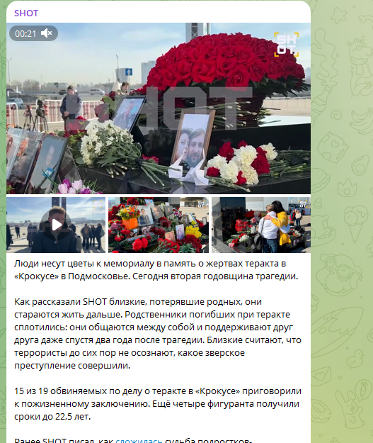 22 марта также и грустная годовщина теракта в концертном зале. В этот день два года назад вооружённые террористы напали на "Крокус", устроив стрельбу и пожар. Погибли 147 человек, сотни пострадали.