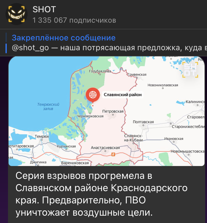 На Кубани мощные взрывы. ВСУ атакуют Славянский район