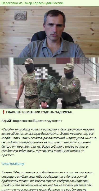 Царьград вновь вынужден рассказывать о весьма чувствительной теме. Причиной стал пост о том, что "главный изменник Родины задержан", и в том числе в этом посте фигурировало имя военного блогера Юрия Подоляки. Скандала избежать не удалось.