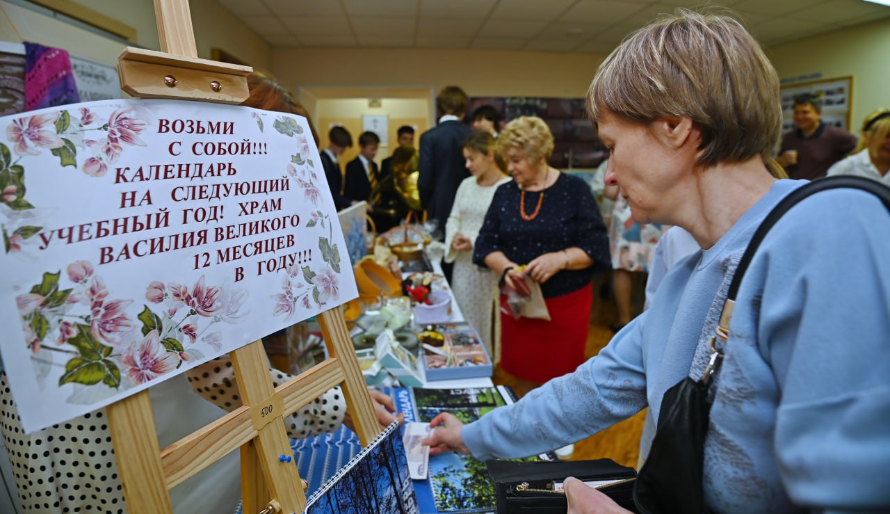На ярмарке "Белый цветок" в Гимназии Святителя Василия Великого сегодня были представлены поделки учащихся и изделия декоративно-прикладного творчества.