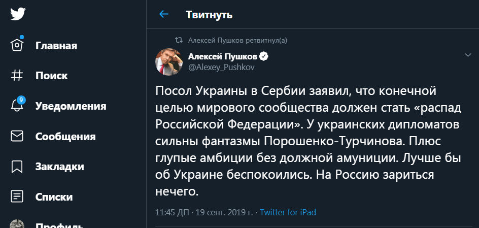 Скриншот: Twitter/@Alexey_Pushkov