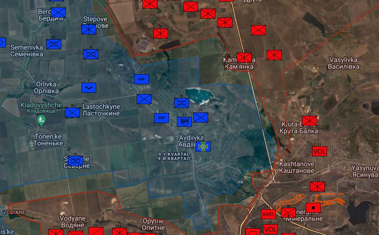 "Авдеевские клещи" сжимаются. Фото: скриншот Telegram-канала "Осташко! Важное"