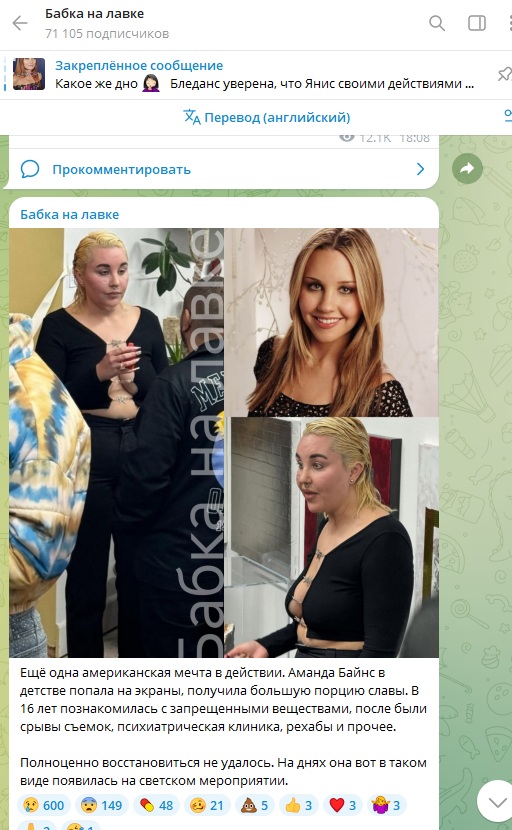 В себя Аманда так и не пришла. Скриншот/https://t.me/babkalavka/24935.