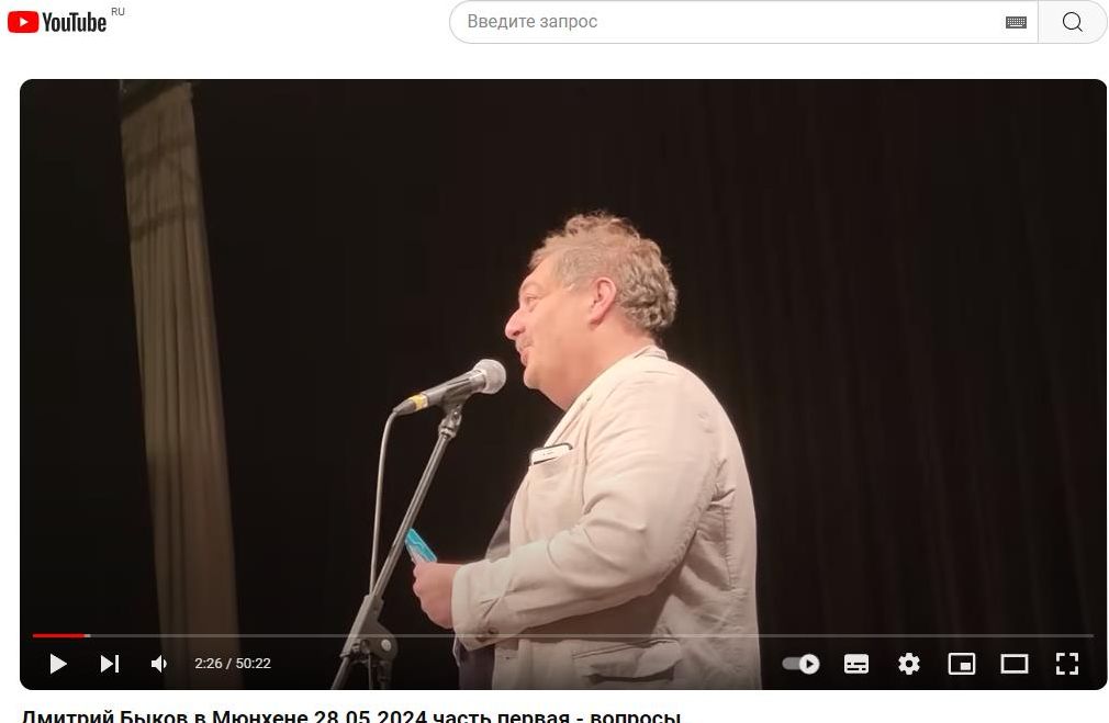 Сбежав из России, Дмитрий Быков* гастролирует по свету. Скриншот: YouTube-канал Tanja #white flower#