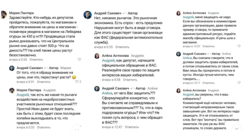 Издание "Волжск2" ранее опубликовало скриншоты переписки Саковича с гражданами, где он, в частности, советовал читателям игнорировать "тупые комментарии" и не открывать рот, если их не спрашивают. Он также отметил, что возмущённые женщины, которые выражали недовольство растущими ценами, не обучены правилам хорошего тона.